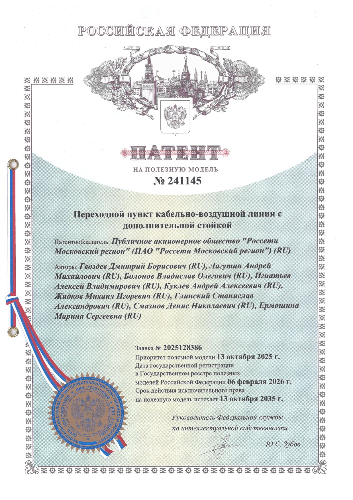 Патенты ПАО «Россети Московский регион»