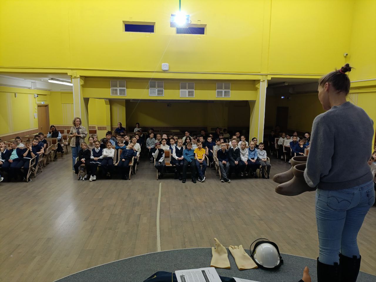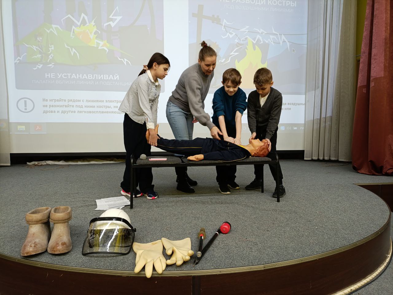 В течение урока Наталья Лагунова продемонстрировала ребятам некоторые приемы первой медницкой помощи на тренажёре «Гоша», диэлектрическую экипировку электромонтеров, загадывала тематические загадки. Дети с большим интересом участвовали в интерактивном обсуждении. Также в конце школьники смогли посмотреть интересный и познавательный мультфильм с любимыми героями.